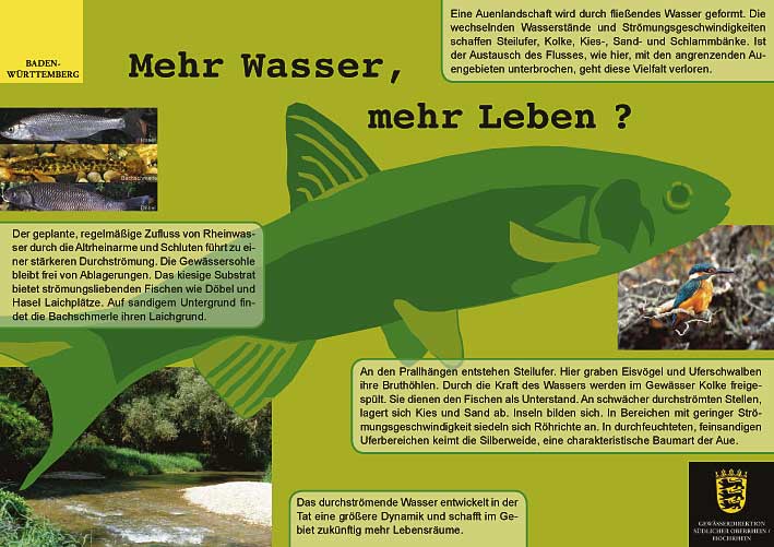 Der Infopfad entstand im Auftrag der Gewässerdirektion Südlicher Oberrhein. Schon bei der Auswahl der Standorte für die Infotafeln hat impuls die Gewässerdirektion beraten. So wurde festgelegt, welches Thema sich für welchen Standort eignet.