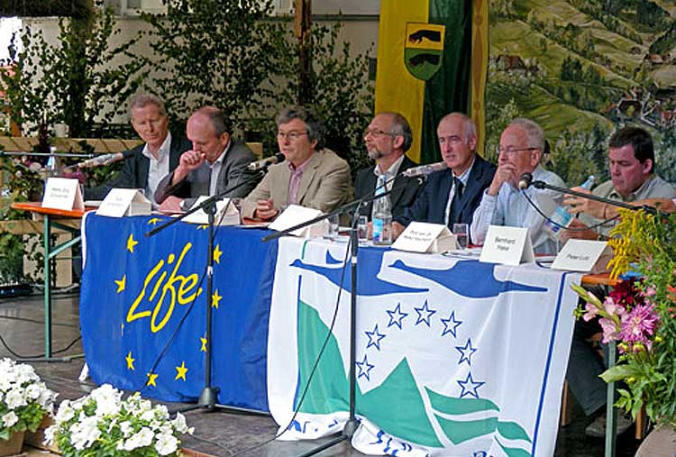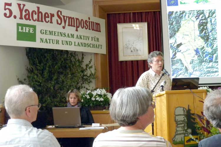 In den Jahren 1994 und 1995 arbeitete impuls an der Realisierung des Dokumentar- filmes „Rüttibrennen im Schwarzwald - Geburt einer Landschaft“. Zusammen mit älteren Landwirten wurde eine Bewirtschaftungsform, die bis in die 1960er Jahre noch durchgeführt wurde am Reutberg in Yach in Szene gesetzt. Um dem Filmthema „Landschaftswandel“ ein größeres Forum zu bieten, entwickelt impuls die Idee einer Symposiumsreihe. Mit Mitteln des Landes Baden-Württembergs konnte das 1. Yacher Symposium „Der Wandel in der Landschaft“ im Rahmen des Europäischen Naturschutzjahres 1995 in Yach durchgeführt werden. Der Staatssekretär des Umweltministeriums Baden-Württemberg Peter Reinelt sagte in seiner Einführungsrede: "In der viertägigen Veranstaltung wird gezeigt, dass Naturschutz und Landschaftspflege nicht nur eine Aufgabe einiger weniger Spezialisten ist, sondern alle Menschen angeht. Unsere Landschaft ist vom Menschen geprägt und vor allem durch die überkommene Land- und Forstwirtschaft gestaltet. Viele wildlebende Tier- und Pflanzengemeinschaften haben sich an diese Kulturlandschaft angepasst und sind von ihr abhängig. Wenn es heute um die Erhaltung dieser Tier- und Pflanzenarten geht, so geht es zugleich um die Bewahrung unserer Kulturlandschaft und noch deutlicher um den Schutz unserer Heimat. Diese Zusammenhänge wurden zum ersten Mal in dieser Weise mit Fachdiskussionen, einer Filmpremiere, Ausstellungen, Vorführungen historischer Landnutzungen, mit Kutschfahrten, Musik und mit Angeboten regionaler Speisen verdeutlicht. Außerdem ist bewiesen worden, dass Naturschutz und Landschaftspflege durchaus Anlass für ein Fest sein können." Die Symposiumsreihe, die 1995 mit impuls erfolgreich begann, hat sich in einem Turnus von 4 bis 6 Jahren mit unterschiedlichen Schwerpunkten zu einer Yacher Tradition entwickelt. Im Jahr 2011 wurde das 5. Yacher Symposium mit einer Ausstellung des Heimat- und Landschaftspflegevereins über die Zukunftswerkstatt „Yach 2011“ wieder mit zahlreichen Vorträgen und einem Podiumsgespräch in Kooperation mit den Yacher Vereinen erfolgreich durchgeführt. |